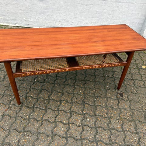 Dejlig sofabord i teak med flethylde under alt i fin stand / sælges grundet flytning