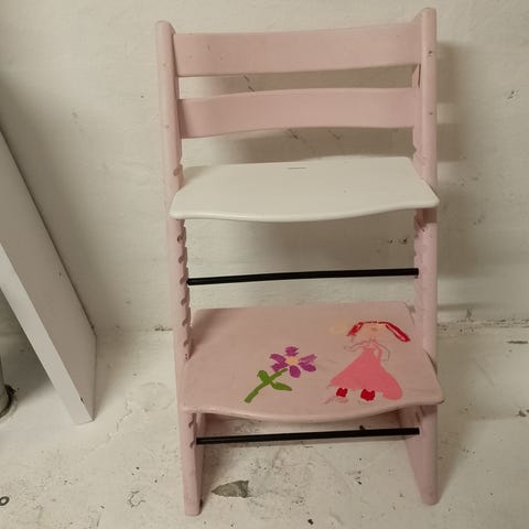 Robust højstol i massivt lyst egetræ