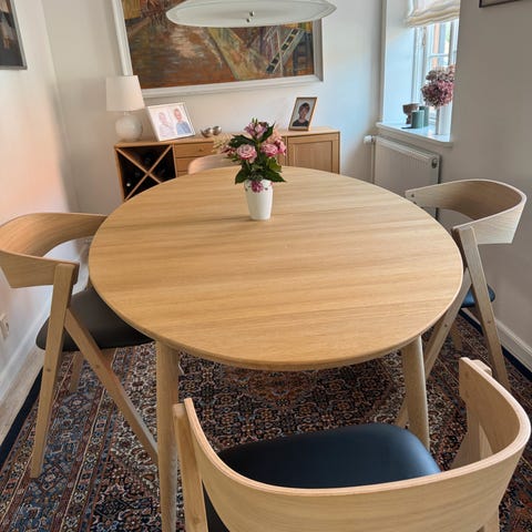 Flot egetræs spisebord med to tillægs plader