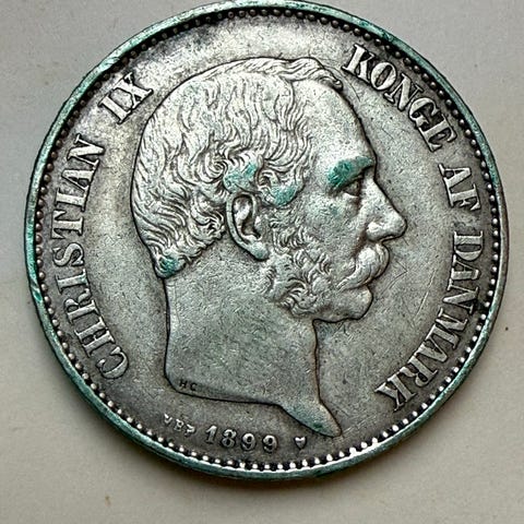 Flot svensk 2-krone i sølv (80%) fra 1910, mønten er ikke renset men fremstår flot med patina.