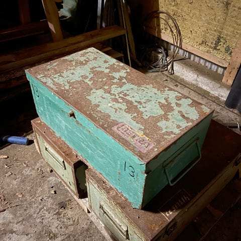 2 stk værktøjskasse i stål. Lagergemt. Den ene er helt ny, ubrugt, i sin originale æske; den anden er brugt én gang og har en lille bule fra forsendelsen, se billede.