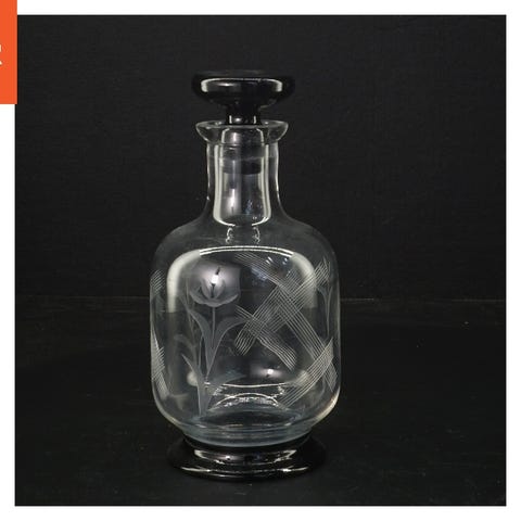Meget smuk og super skæv karaffel i mørkegrønt glas