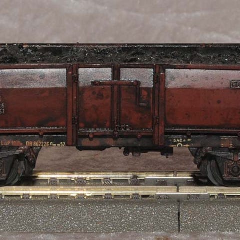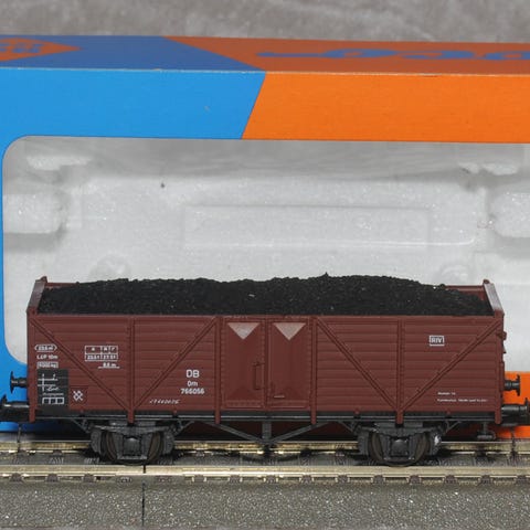 Vognen er brugt. Jeg tror at vognen var patineret fra ny (patineret hos ROCO). Der er tre pletter i lasten hvor der mangler kul, så man kan se skumindlægget under kullene. Koblingerne passer til Märklin bøjlekoblinger.