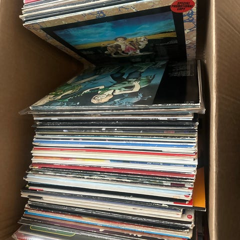 Samling med forskellige vinylplader fra forskellige kunstnere og genrer.