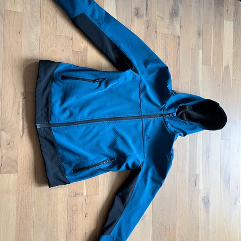 Softshell jakke med hætte, to sidelommer og en brystlomme.