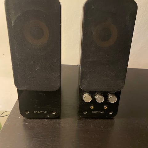 Super fede kompakte computer højtalere. De spiller rigtig godt, og har endda en lille sub med for dybere bas. Fejler intet.
