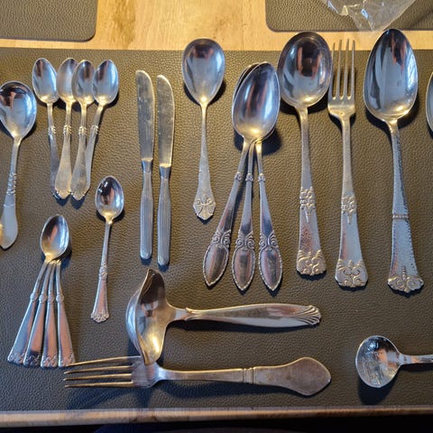 Diverse i sølvplet, totårnet og noget rustfritstål. Sættet indeholder forskellige størrelser og modeller.
