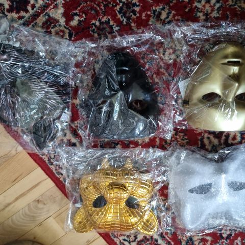 Maske med sort hård plastik, der dækker ansigtet. Masken har detaljeret design og er fastgjort til en sort stofdel, der kan bæres over hovedet. Velegnet til Halloween / fastelavn. Forestiller kranium. Kan evt afhentes på Stevns eller i Roskilde efter aftale. To styk haves.