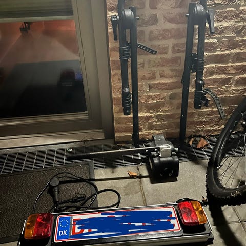 Skal du have cyklen med bag på bilen så kan du sætte den her på dit anhængertræk .