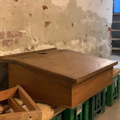 Receptionsskranke i træ med perforeret design - hentes hurtigts muligt