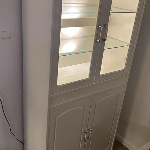 Smukt hvidmalet vitrineskab / opbevaringsskab – retro/vintage sælges!