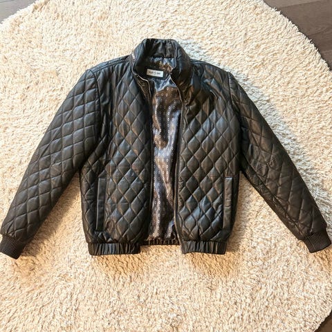 Milestone Jakke i brun farve, størrelse M, lavet af lamlæder. Jakken er designet til mænd og har et quiltet mønster.