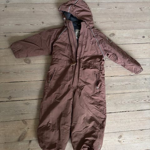 Fin, velholdt flyverdragt med fleece-foer. Dog et hul på indersiden af hvert bukseben (se billede).