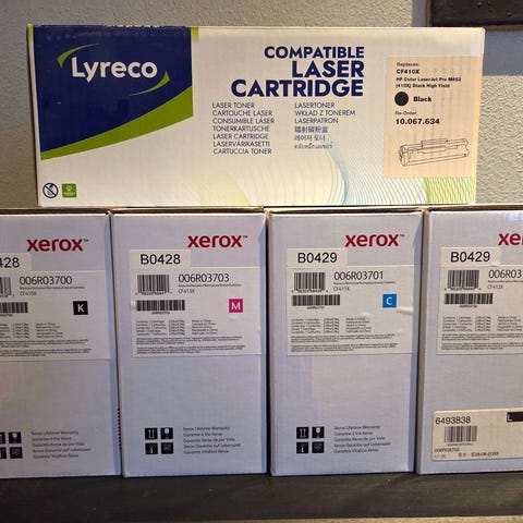 Xerox Everyday Toner Cartridge til laserprinter, kompatibel med HP Color LaserJet Pro M181 og M183. Tonerpatronerne farverne cyan, magenta, gul og sort, designet til brug i farve-laserprinter sælges samlet, fragt oveni