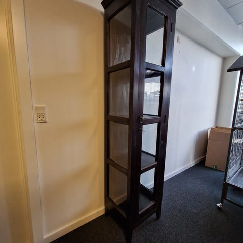 Vitrineskab med glasdør og træramme