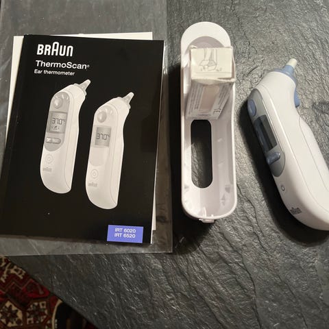 Dette øretermometer er nemt og enkelt at bruge til selv de mindste. Halvanden pakke hætter følger med. Batteriet skal dog skiftes - det bruger et helt standard CR2032 knapcelle batteri, som fås alle steder.