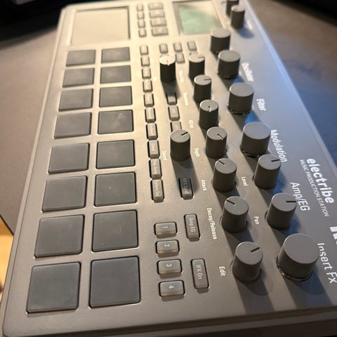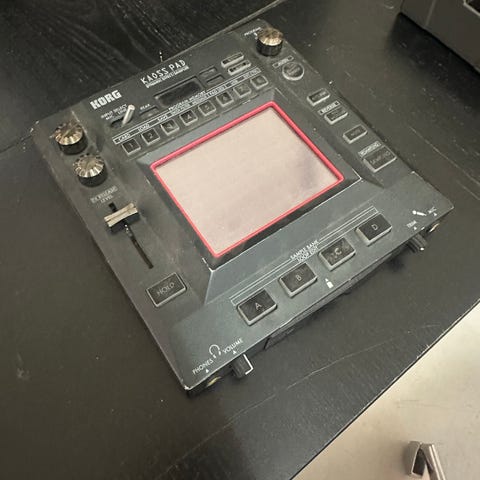 Kaoss Pad er en superfed lille maskine med masser af forskellige effekter til dit hardware- eller dj-setup. Det er en effektprocessor med en integreret touchpad til styring af effekter. Den fungerer supergodt til både musikproduktion og live performance. Den har midi ind- og udgang.