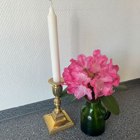 Messing lysestager og mælkekande sæt