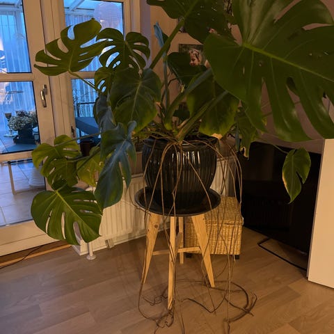 KÆMPE monstera, meget sund og velholdt 9-årig monstera. Kan sagtens blive større hvis man omplanter i større krukke. Forbliver i denne størrelse hvis den bliver i denne tykke og hårde plastkrukke.