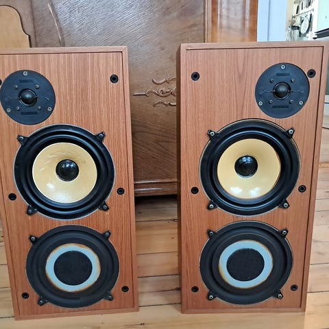 Højttalerne har deres tydelige brugsspor på kabinettet.