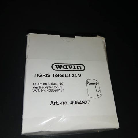 Wavin termostatventil med en spænding på 24V og effekt på 2W. Ældre men virker som de skal.