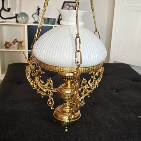 elegant lampe - messing farvet med skærme af glas