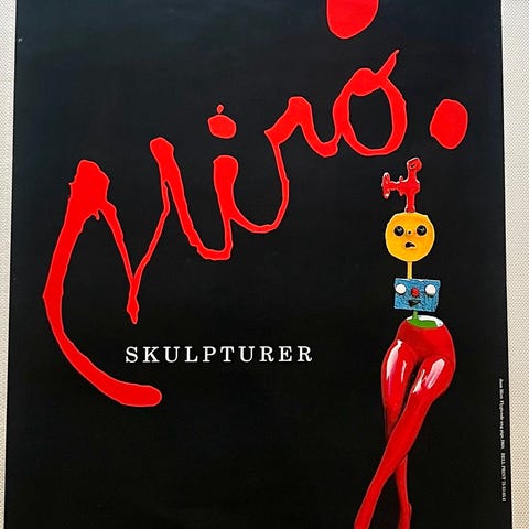 Joan Miró kunstplakat med abstrakt motiv i farverig sammensætning. Plakaten viser karakteristiske former og farver, typisk for Mirós kunststil.