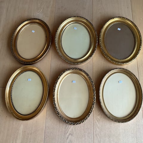 4 guld rammer i forskellige størrelser. Brugt til fest som bordkorts holder og “memory lane”