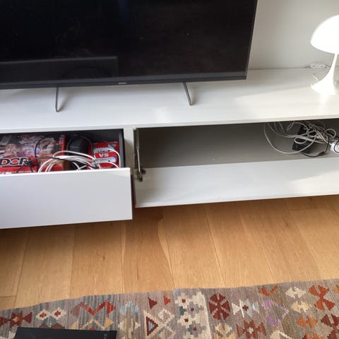 Jeg sælger mit fine hvide TV bord, der har enkelte skrammer, men ellers i god stand.