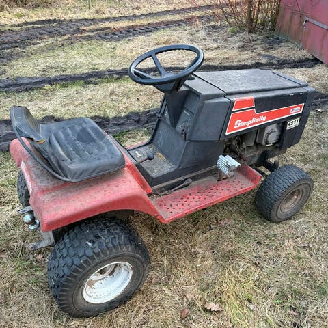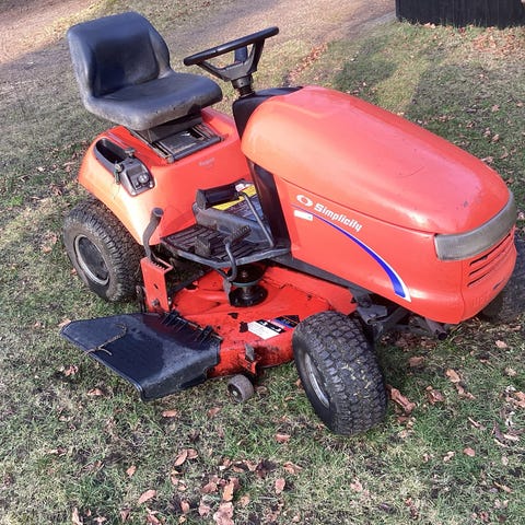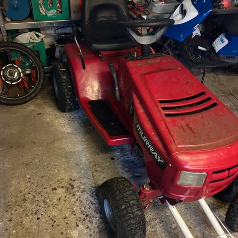 Toro 13-32 plænetraktor,fin lille plænetraktor med kun en stor kniv,der kan slå næsten alt uanset højde,trænger til lidt kærlighed hist og her,men klippebordet blev lavet sidste år og der er forholdsvis ny kniv og klipperem på.. mangler batteri,men kan strates med start kabler,bruger en smule olie.