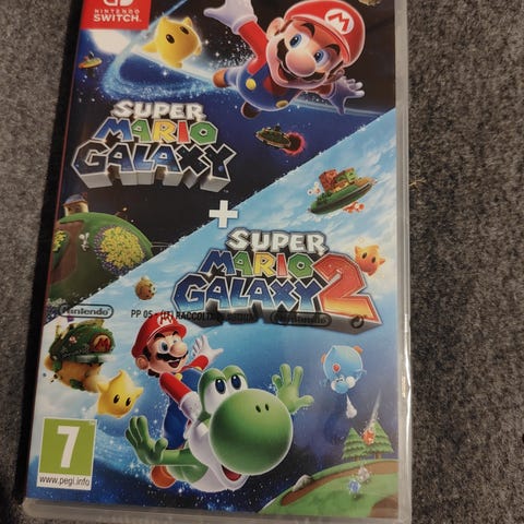 Nintendo Switch Super Mario Galaxy + Super Mario Galaxy 2 spil. Spillet indeholder to dele, Super Mario Galaxy og Super Mario Galaxy 2, til Nintendo Switch konsollen. Egnet til aldersgruppen 7 år og op.