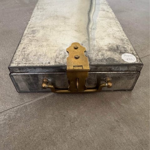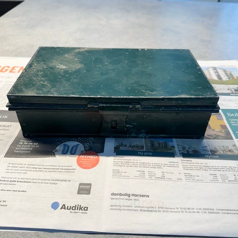 Lille fin pengekasse i metal med lås og ruminddeling