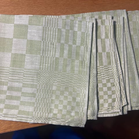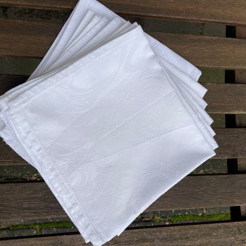 60 ens lyseblå damaskservietter. Måler 48 x 50 cm. Velholdte. 10 kr. stykket, 12 styk 100 kr.