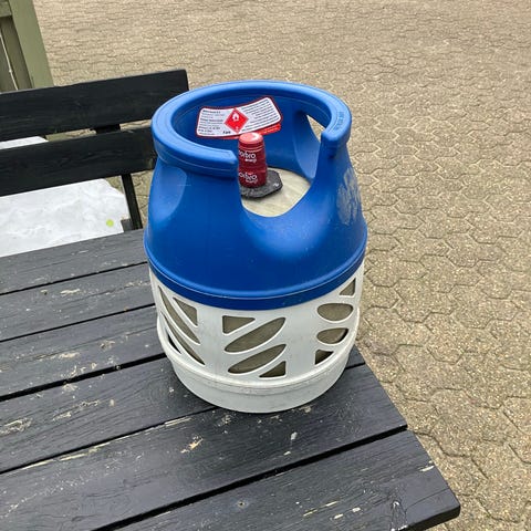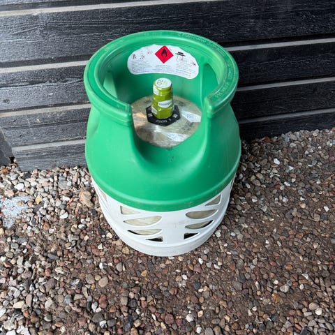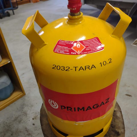 En fyldt og plomberet 10 kg gasflaske 650,-