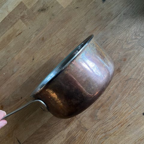 Dobbeltbundet vintage Hackman gryde i rustfrit stål med låg