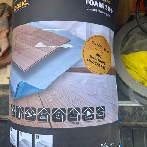 1 rulle excellence gulvunderlag fra Berryalloc. Som jeg læser det, svarer en rulle til 10m2 gulv.