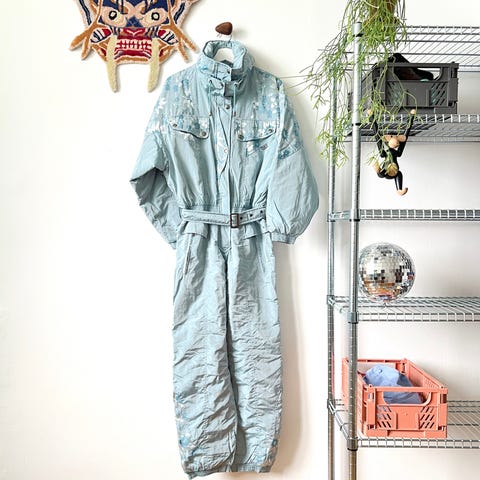 Beautiful unique vintage ski suit in great condition. Rare, never seen anywhere, this winter season you must have it! Made out of very comfortable, strong material. Zipped fastening, 2 outer pockets, elastic waist, high collar, perfect both for skiing or for casual wear. Zip pockets on sides.