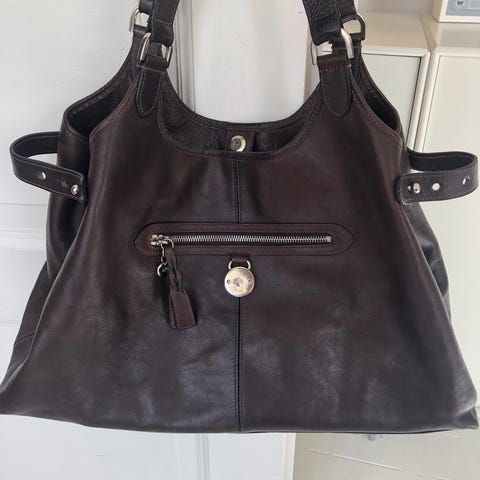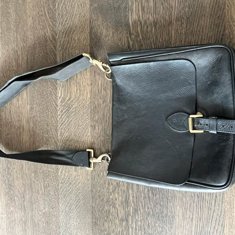 Tasken har få ridser/ brugsspor, mest inden i tasken (se billede). En smule læder fedt ville give den et næsten nyt look. Guld buckle med Mulberry mærke er en smule affarvet, står dog stadig pænt.