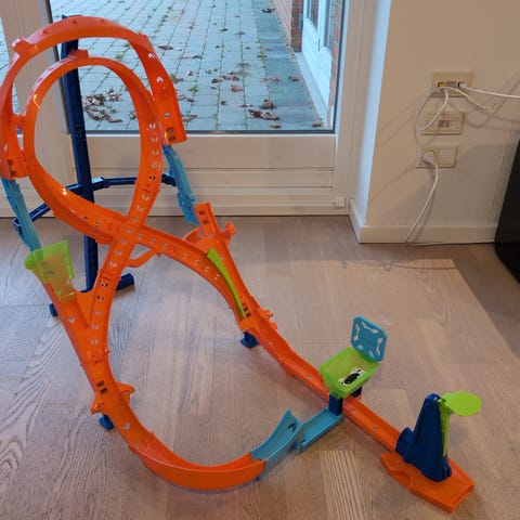 Hot Wheels bane til børn med flere spor og tilbehør. Indeholder forskellige elementer til leg og bilkørsel. Designet til at stimulere kreativ leg og motoriske færdigheder. 1199kr for ny med biler