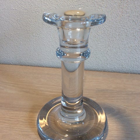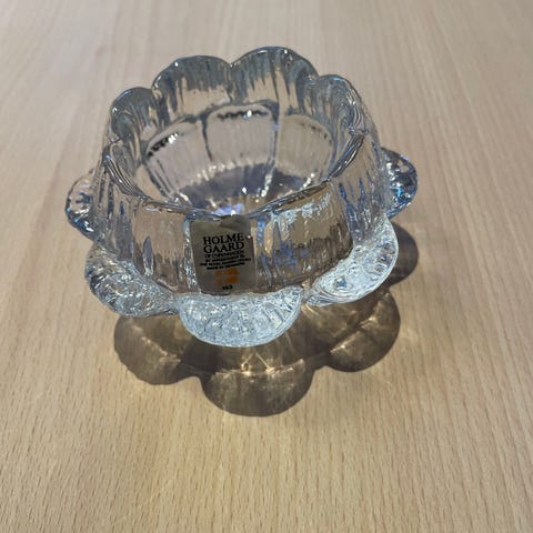 Holmegaard lysestage i klart glas med cirkulært mønster. Anvendelig dekoration / lys.