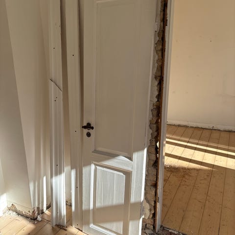 Dobbelt indvendig dør med karm uden inddækning, mangler 3 hængsler
