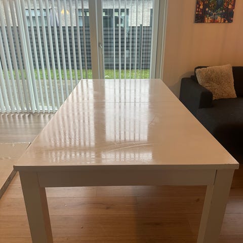 5 stk. borde med udtræk, sælges samlet. Længden øges til 190cm, når udtrækspladerne er trukket ud.