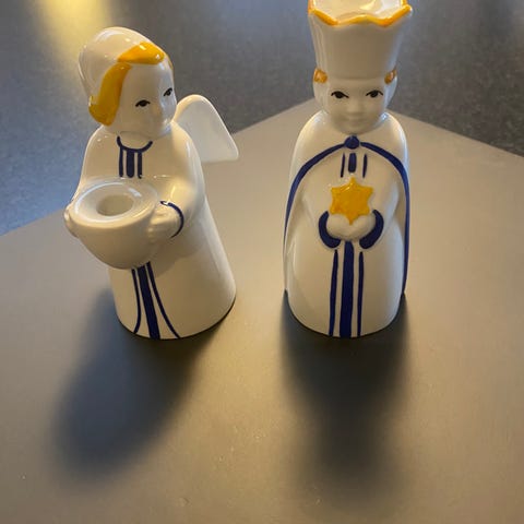 Et par antikke kolonne lysestager fra Royal Copenhagen fra år 1850-70.