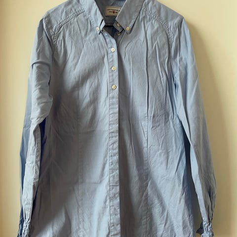 Oxford Blue skjorte med Kinakrav. 100% bomuld. Fint kvalitet. Aldrig brugt.