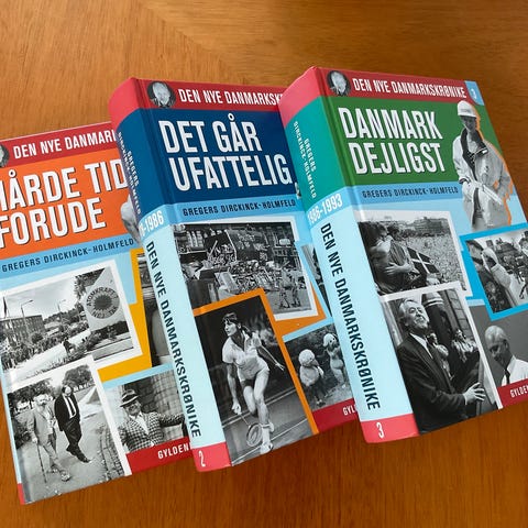 Den nye danmarkskrønike 1-3 (komplet). Af Gregers Dirckinck-Holmfeld. Gyldendals Bogklubber, 2000, Stor hardback-udgave. Komplet i 3 bind. Fejlfrit eksemplar.