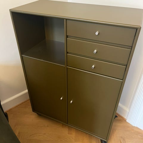 Montana kontor modul på hjul i grå (anthracite) med beige låger. (Nypris ca 12.000 kr)