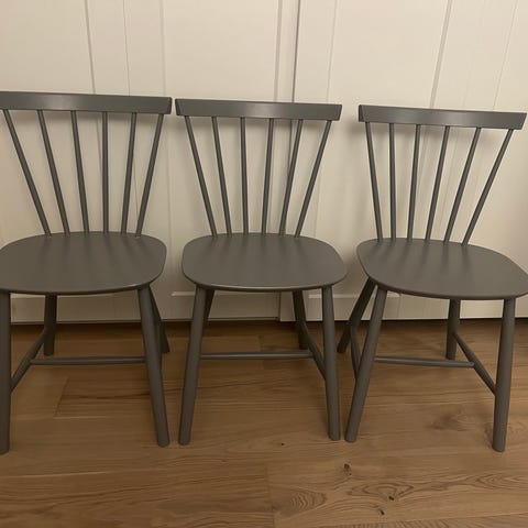 Jeg sælger 2 mørkegrønne FDB J46 spisebordssole i meget god stand. Der er hynde med til dem begge.