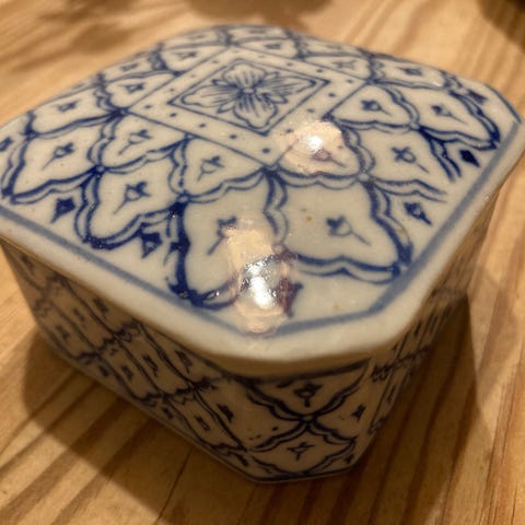 Porcelæn i sarte farver, opbevaring af smykker, nips mm.