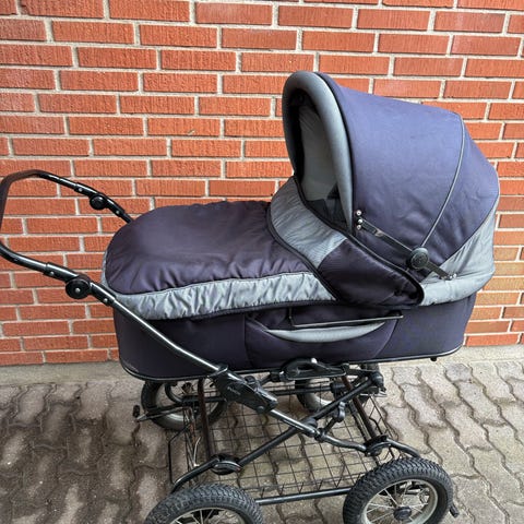 Fin barnevogn med langt liggemål. Den har været brugt og har derfor alm. brugstegn - perfekt som en ekstra barnevogn til have eller altan.