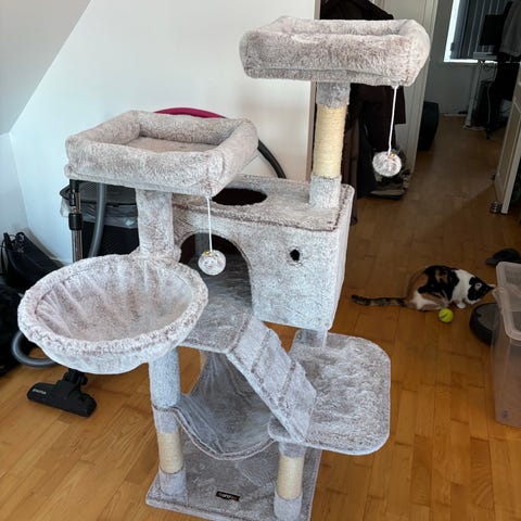 Kradsetræ med hule og platform i sort stof